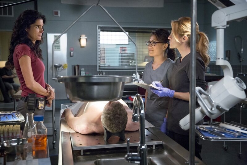 Immobilienmakler Ronald Wallace (Steven Eckholdt) wird tot in seinem Hotelzimmer aufgefunden. Susie Chang (Tina Huang, l.) und Dr. Maura Isles (Sasha Alexander) stellen bei der Obduktion fest, dass der Tote nicht der ist, für den er sich ausgibt.