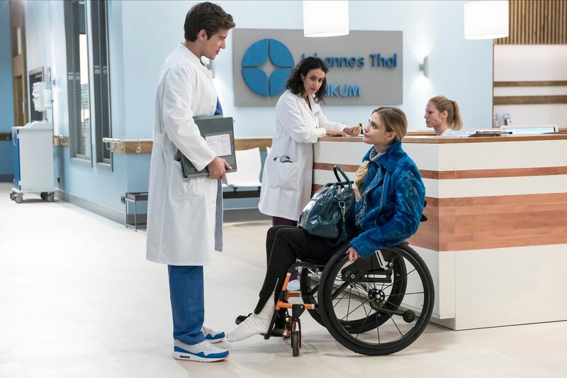 Dr. Niklas Ahrend und Dr. Theresa Koshka werden zu der alleinerziehenden Anne Kramer gerufen. Die Frau spielt ihren Schmerz herunter, lässt sich dann aber überzeugen, mit ins Krankenhaus zu kommen.