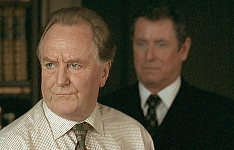 Gutsherr Robert Cavendish (Robert Hardy, l.) bemüht sich nicht, seinen Zorn darüber zu verbergen, dass die Polizei in Person von Inspector Barnaby (John Nettles, r.) so lange braucht, um der Vermisstenmeldung seiner Frau nachzugehen.