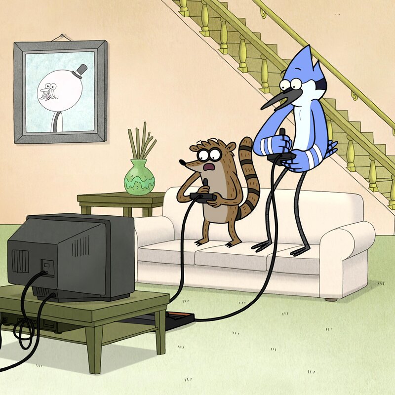 Mordecai und Rigby wollen für ein Videospiel einen seltenen, goldenen Patch finden.