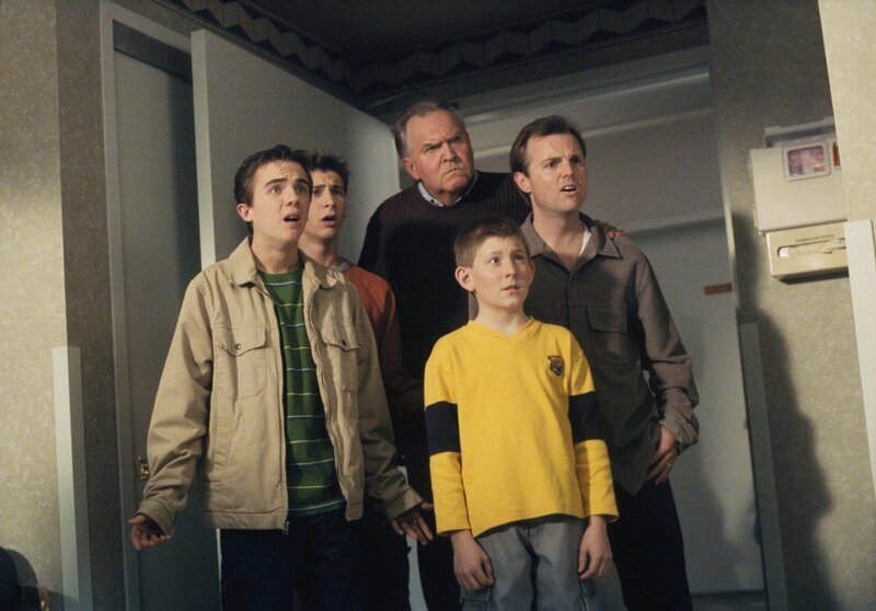 Von links: Malcolm (Frankie Muniz), Reese (Justin Berfield), Dewey (Erik Per Sullivan), Hal (Bryan Cranston) und Lois (Jane Kaczmarek)