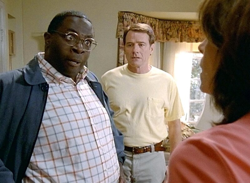 • "Malcolm mittendrin", "Die Preisverleihung." Stevies Mutter Kitty hat ihre Familie vor zwei Jahren verlassen. Nun kehrt sie von ihren bis in die Pornobranche bekannten Ausschweifungen zurück und bittet Lois um Hilfe: Sie will ihren Mann wieder für sich gewinnen. Malcolm hingegen hilft Stevie, eine Dankesrede für die Verleihung des Kavalier-Preises vorzubereiten - leider hat Reese auch noch ein Wörtchen mitzureden. Indes muss sich Dewey unter Francis' Aufsicht einem qualvollen, brüderlichen "Initiationsritus" unterziehen. Im Bild (v.li.): Gary Anthony Williams (Abe Kenarban), Bryan Cranston (Hal), Jane Kaczmarek (Lois).