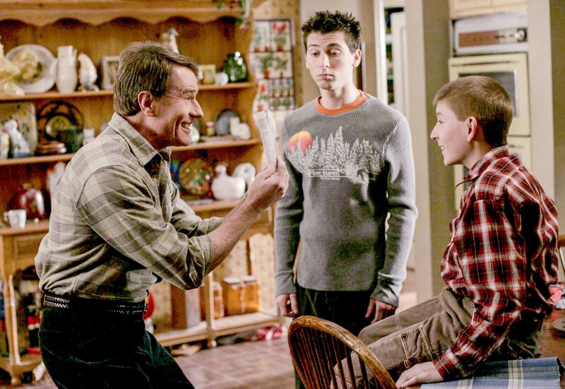 "Malcolm mittendrin", "Der perfekte Dad." Hals Vater ist gestorben. Die beiden hatten wenig Kontakt und Hal ist nicht nach trauern zu Mute. Da er nicht möchte, dass seine Kinder ihm ähnlich gleichgültig gegenüberstehen, versucht Hal, ihnen ein besserer Vater zu sein. Er erlaubt ihnen, die Schule zu schwänzen und will Malcolm sogar ein Auto kaufen. Alleine Abe bemerkt, wie niedergeschlagen Hal ist. Im Bild (v.li.): Bryan Cranston (Hal), Erik Per Sullivan (Dewey), Justin Berfield (Reese).