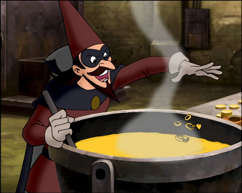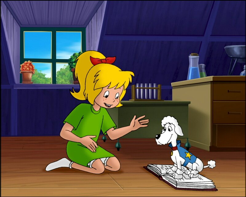 Bibi quält sich mit einer schweren Mathestrafarbeit. Wie schön wäre es, jemanden zu haben, der ihr dabei hilft. Jemanden wie den Superpudel Puck aus ihrem Lieblingsbuch zum Beispiel. Der bekämpft den fiesen Räuber Katzengold. Kurzerhand hext sie Puck herbei. Nun ist die Strafarbeit schnell gemacht, doch Neustadt wird plötzlich von einer Einbruchserie heimgesucht. Es dämmert Bibi, dass der Räuber Katzengold dahintersteckt. Er muss ebenfalls dem Buch entschlüpft sein. Weil der Gauner auf alles Goldene scharf ist, stellen Bibi und Florian ihm eine Falle bei der goldenen Ritterrüstung von Ritter Rudibert. Doch der Unhold entkommt mit der Rüstung. Und in dieser steckt Florian.