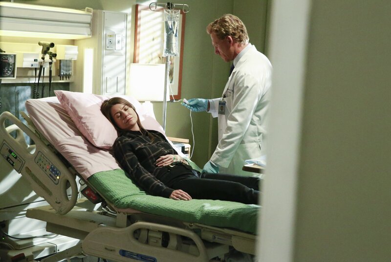 Nachdem Meredith (Ellen Pompeo, l.) ihren Kollegen mitgeteilt hat, dass Derek tot ist, ist sie zusammengebrochen. Owen (Kevin McKidd, r.) kümmert sich um sie, während Amelia einen Patienten behandelt und von dem ganzen noch keine Ahnung hat ...