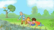 Conni überlegt sich, wie ein Frosch hüpft oder eine Kröte. Gibt es einen Unterschied? Opa schlägt vor, gemeinsam mit Simon auf Entdeckungstour zu gehen. Im Frühling entwickeln sich Pflanzen und Tiere. Frösche hüpfen, Kröten laufen. Conni erfährt, was eine Krötenwanderung ist und hilft sogar beim Eimer tragen. Zusammen mit Opa sehen sie Kaulquappen und beobachten Störche beim Nestbau.