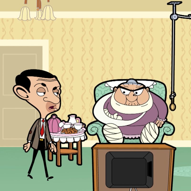 Mrs. Wicket rutscht auf einem von Mr. Beans Spielzeugautos aus. Nach einer kurzen Zeit im Krankenhaus kommt sie wieder nach Hause. Da sie sich nicht bewegen kann, muss sich Mr. Bean um seine Vermieterin kümmern. Damit hat er alle Hände voll zu tun...