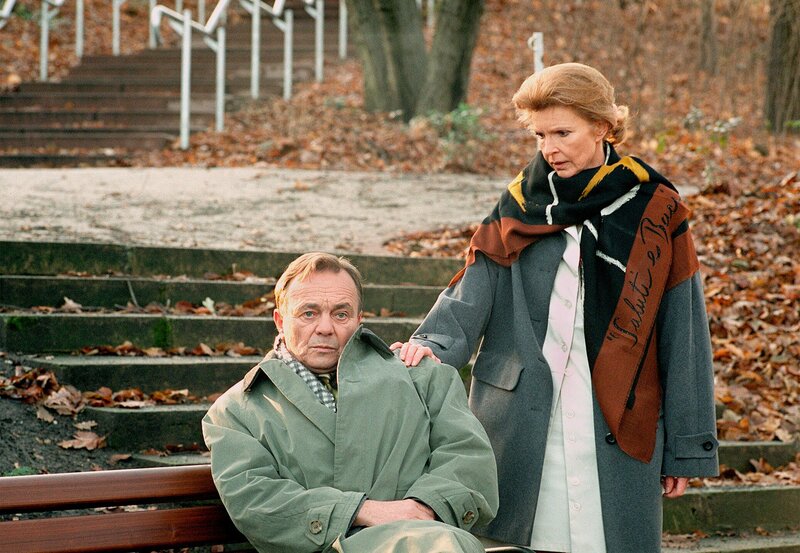 Prof. Simoni (Dieter Bellmann, li.) ist in einer tiefen Sinnkrise. Annas Eltern halten ihn für schuldig, dass ihrer Tochter ein Bein amputiert wurde. Oberschwester Ingrid (Jutta Kammann, re.) spricht ihm Mut zu.