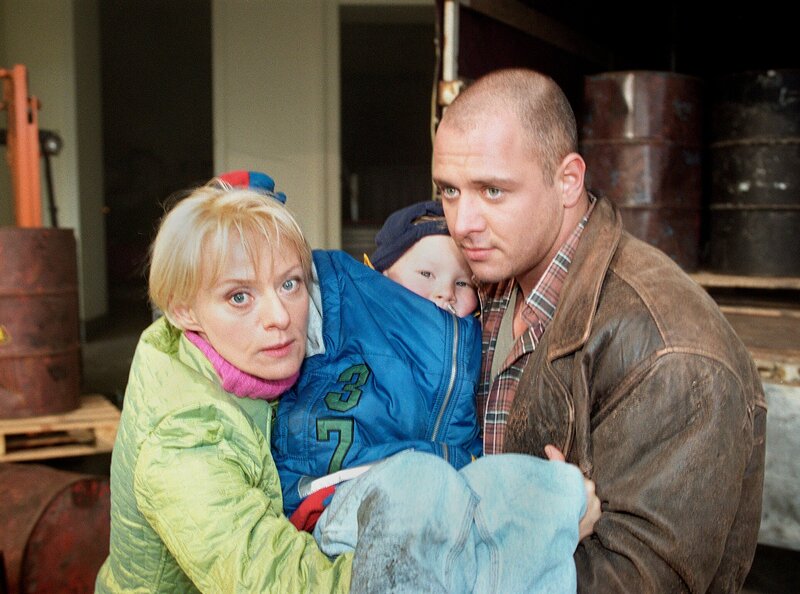 MDR Fernsehen IN ALLER FREUNDSCHAFT FOLGE 72, "Zwischen zwei Leben", am Donnerstag (10.05.12) um 12:30 Uhr. Ein LKW-Fahrer (Tino Glanze, re.) und Linda Jakubeit (Michaela Kaspar, li.) retten Sven Jakubeit (Gregor Hirsemann, Mitte) nach dem Unfall. Sven ist in eine Wolke hochgiftiger Chemie-Dämpfe geraten.