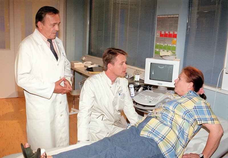 Frau Charlotte hat's erwischt. Widerwillig liegt sie auf dem Behandlungstisch. Dr. Barach und Prof. Simoni stellen die Diagnose.