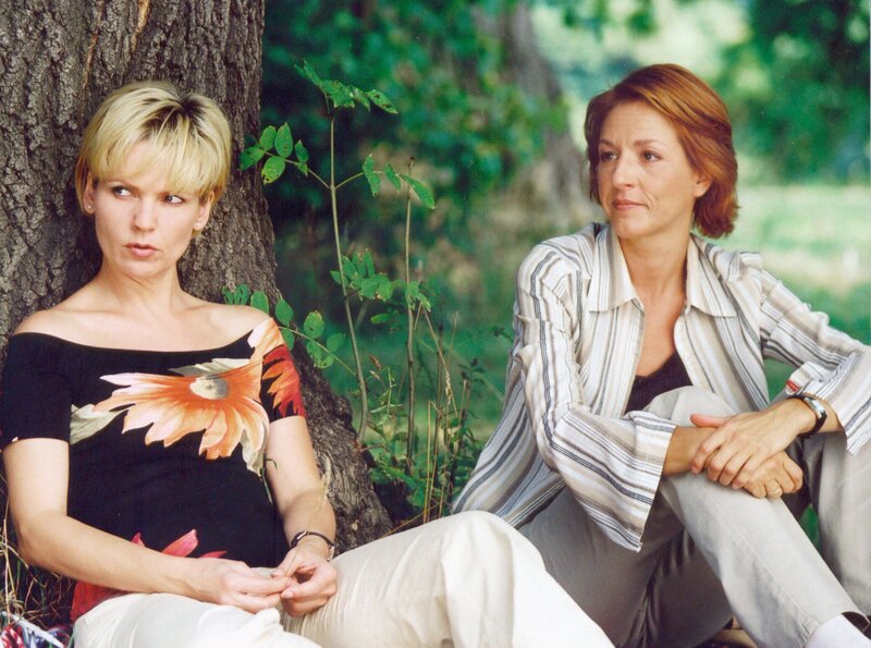 MDR Fernsehen IN ALLER FREUNDSCHAFT FOLGE 201, "Harte Kerle". Kathrin (Andrea Kathrin Loewig, links) ist überzeugt, dass ihr Sohn Lukas sich in das falsche Mädchen verliebt hat und sucht Rat bei Pia (Hendrikje Fitz).