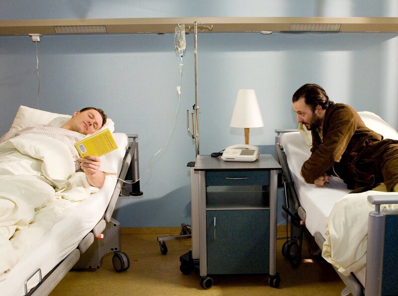 MDR Fernsehen IN ALLER FREUNDSCHAFT FOLGE 310, "Flirtfieber". Erik Fromm (Andreas Dilschneider, li.) teilt sein Zimmer mit Niels van Gusten (Robert Schupp, re.), dem eloquenten Autor eines Flirtratgebers. Niels zeigt, im Gegensatz zu Erik, vom ersten Augenblick Interesse an Lisa.