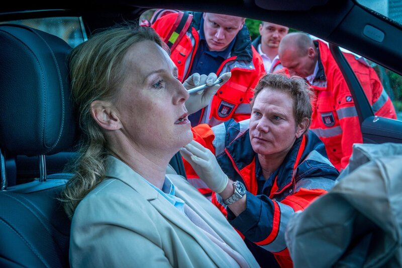 Dr. Haase (Fabian Harloff) kümmert sich um Frau Mackenroth (Carolin Fink), deren Wagen von einem anderen Fahrzeug gerammt wurde, und muss feststellen, dass es sich bei der selbstbewussten Dame auch um eine Medizinerin handelt. Sie gibt eine präzise Diagnose ihres Zustandes ab.