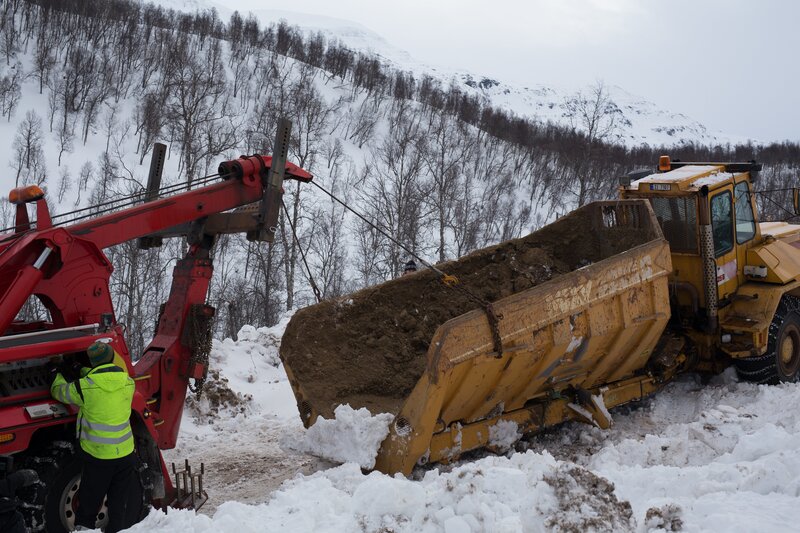 In Eidfjord ereignet sich ein tragischer Unfall, bei dem ein Trucker ums Leben kommt. Das ausgebrannte Wrack blockiert nun allerdings die Straße - ein Fall für Bjørn vom Abschleppdienst. Außerdem: Ein mit Fisch beladener LKW ist von der Straße abgekommen, die Ware droht zu vergammeln, und in den Bergen wird ein deutscher Truck genau unter die Lupe genommen.