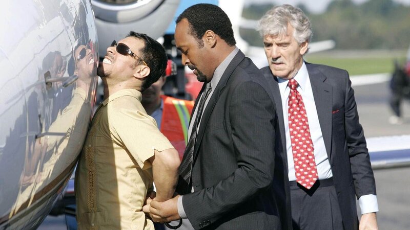 Als sie den mutmasslichen Mörder Borges (David Anzuelo, li.) an der Grenze schnappen, stellen Det. Ed Green (Jesse L. Martin, Mi.) und Det. Joe Fontana (Dennis Farina) fest, dass der Auftraggeber für den Mord an ganz anderer Stelle zu suchen ist.