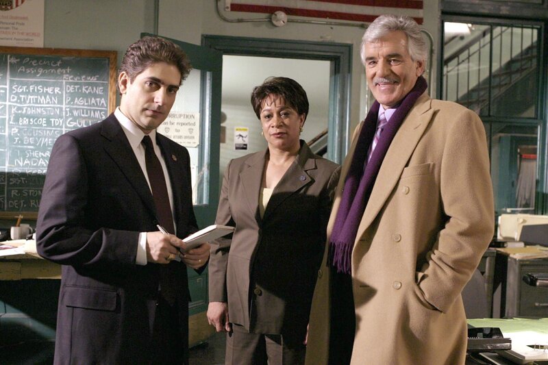 LAW & ORDER -- NBC Series -- "Publish and Perish" -- Pictured: (l-r) Michael Imperioli as Det. Nick Falco, S. Epatha Merkerson as Lt. Anita Van Buren, Dennis Farina as Det. Joe Fontana -- NBC Universal Photo