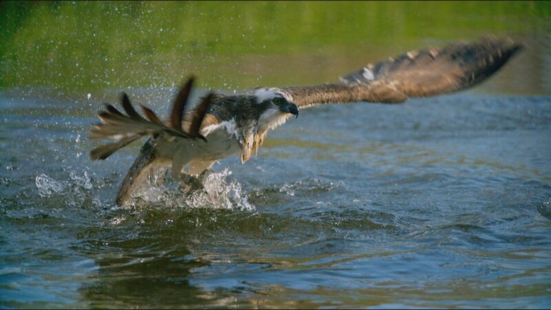 • Ein Fischadler hat in einem See in Finnland Beute gemacht.