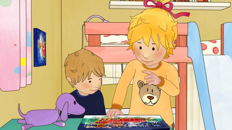 • Conni und Jakob freuen sich: Sie öffnen das erste Adventskalender-Türchen.
