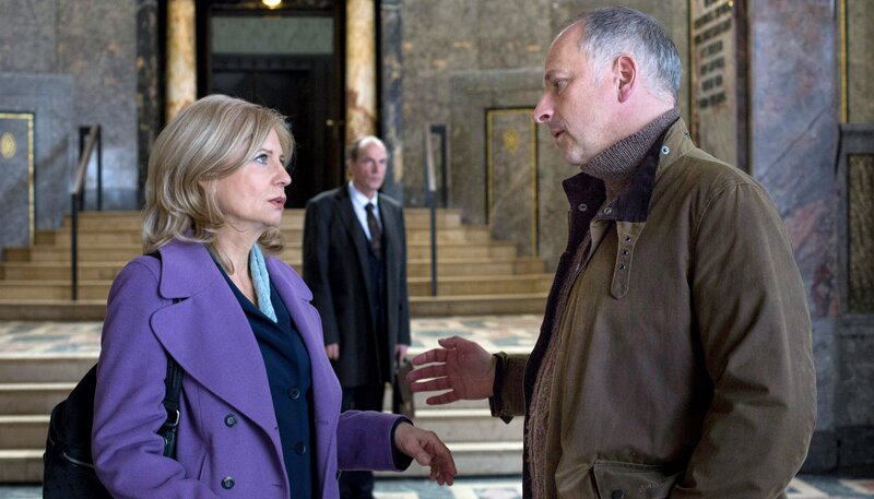 Anwalt Markus Gellert (Herbert Knaup, im HG.) beobachtet das Streitgespräch zwischen Isa von Brede (Sabine Postel, l.) und ihrem Bruder Egin von Brede (Frank Röth, r.).