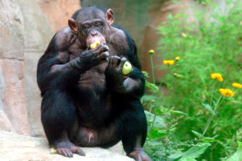 • Schimpanse Chicko soll sein Pipi fuer die Forschung geben