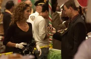 • Die Detectives Stella Bonasera (Melina Kanakaredes) und Mac Taylor (Gary Sinise) stärken sich mit etwas Kuchen, bevor sie ihren nächsten Fall anpacken.