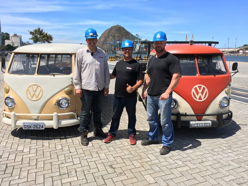 L-R: Michael Manousakis, Marcelo (Bus-Seller) and Volker Stein with VW Bullis
