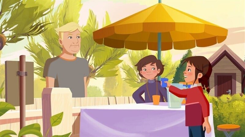 Tara und Tiecke, Jul und Fritzi eröffnen einen Stand, an dem sie kühlen Früchtetee und Eis verkaufen. Doch es dauert nicht lange, da macht ihnen der Nachbar einen Strich durch die Rechnung. Denn Herr Voisin fühlt sich durch die Kundschaft belästigt. Umso mehr Kundschaft es gibt, umso nachdrücklicher erhebt er Einspruch. Und dann klauen die Jungs den Mädchen auch noch die gute Idee!