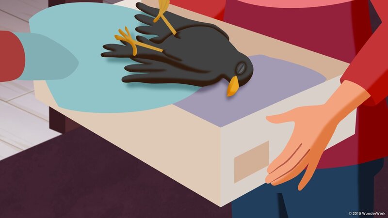 • Der tote Vogel soll im Schuhkarton beerdigt werden.