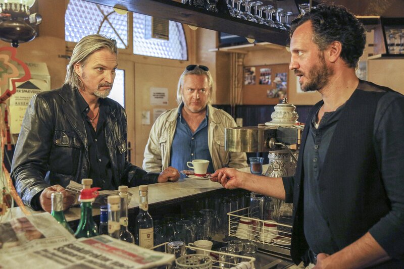 • "Soko Donau", "Gottes innerer Schweinehund." Als die Cops gerade am Tatort eine übel zugerichtete Frauenleiche untersuchen, wird Helmuth von einem Espresso am Mexikoplatz angerufen: Der Pfarrer der dortigen Kirche hätte sich gerade mit mehreren Schnäpsen abgefüllt und stammle von einem Mord, den er hätte verhindern können. Wieder ernüchtert ist der Geistliche kein wirklich gutes Gegenüber für unsere Ermittler: Das Beichtgeheimnis verbietet ihm zu erzählen, was er weiß. Doch Helmuth bleibt ihm hartnäckig auf den Fersen, denn vielleicht zieht es den Serienmörder doch wieder in den Beichtstuhl. Im Bild (v.li.): Stefan Jürgens (Carl Ribarski), Gregor Seberg (Helmuth Nowak), Roland Silbernagl (Alfi).