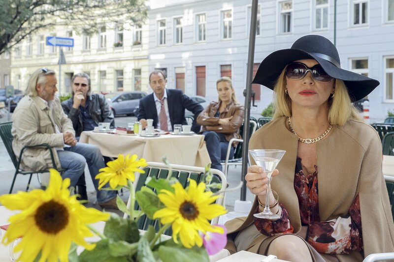 Oberstleutnant Helmut Nowak (Gregor Seberg, l.), Major Carl Ribarski (Stefan Jürgens, 2.v.l.), Oberst Otto Dirnberger (Dietrich Siegl, M.) und Gruppeninspektorin Penny Lanz (Lilian Klebow, 2.v.r.) beobachten die Verdächtige Rita Kepler (Anna Franziska Srna, r.).