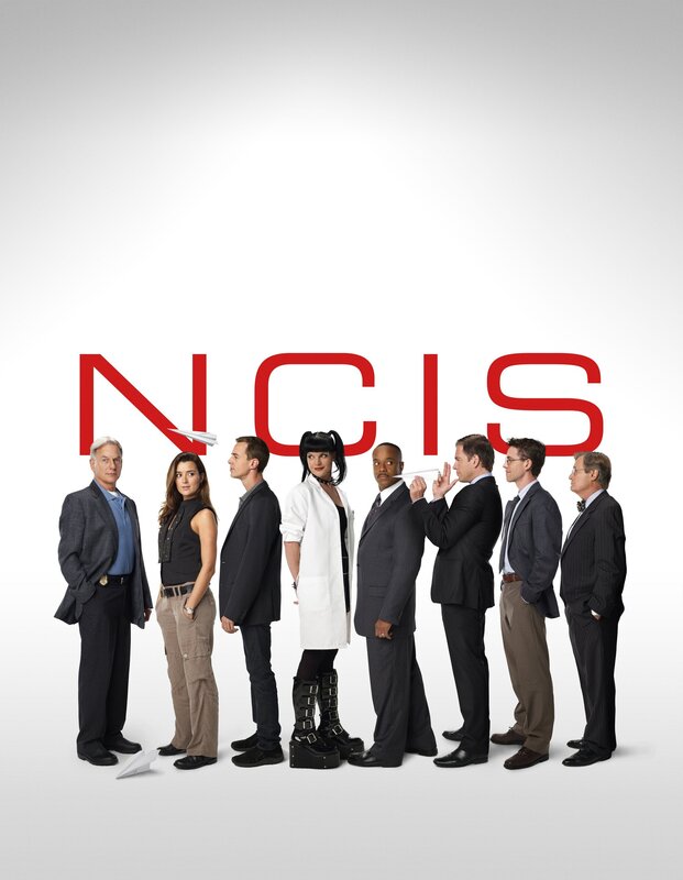 • Die Mitglieder des Naval Criminal Investigation Service: Leon Vance (Rocky Carroll, 4.v.r.), Tim McGee (Sean Murray, 3.v.l.), Dr. Donald Mallard (David McCallum, r.), Anthony DiNozzo (Michael Weatherly, 3.v.r.), Abby Sciuto (Pauley Perrette, 4.v.l.), Leroy Gibbs (Mark Harmon, l.), Ziva David (Cote de Pablo, 2.v.l.) und Jimmy Palmer (Brian Dietzen, 2.v.r.) ...