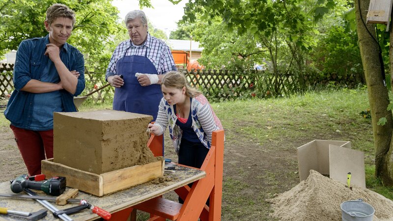 Sand - Die Sphinx von Bärstadt: Es bleibt nur ein Tag, um eine besondere Statue zu schaffen für Charlies Bewerbung an der Kunstschule. Und die Figur muss aus Stein sein. Da hat Fritz eine geniale Idee: Wir bauen mit Sand. Sandkörner sind nichts anderes als winzige Steine, weiß Fritz. Sicherheitshalber versucht Charlie, Professor Nachtigall um Erlaubnis zu fragen. Aber der ist seltsamerweise nie erreichbar. Und auch das Bauen mit Sand gelingt Fritz nicht auf Anhieb. Warum rieselt der mit Wasser befestigte Sandklotz wieder auseinander? Ist der Sand der falsche? Wie gut, dass Nachbar Paschulke gerade einen Sockel aus Beton bauen möchte und dafür besten Bausand gekauft hat. Fritz Fuchs macht ihm ein Tauschangebot, das er nicht ausschlagen kann. Sand ist für uns Menschen enorm wichtig. In unzähligen Dingen, die uns umgeben, steckt Sand, zum Beispiel in Glas oder auch Zahnpasta. Der meiste Sand wird jedoch als Baustoff verwendet. Unsere ganze Welt ist auf Sand gebaut. Aber nicht jeder Sand ist zum Verbauen geeignet. Insbesondere Wüstensand, den es ja im Überfluss gibt, taugt dafür gerade nicht. In vielen Ländern, auch bei uns, muss der Sand zum Bauen teuer abgebaut werden. Und Bausand wird knapp. Er ist ein kostbares Gut, mit dem wir verantwortungsvoll umgehen müssen. Hans-Joachim Heist, bekannt als "Gernot Hassknecht" aus der "heute-show", in einer Gastrolle als "Kunstprofessor Nachtigall".