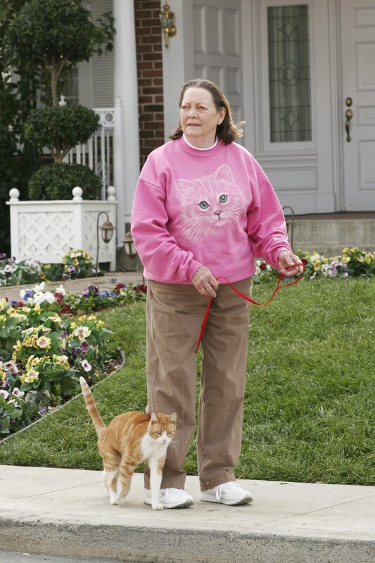• Beim Spaziergang mit ihrer Katze beobachtet Alberta Fromme (Betty Murphy) das Geschehen in der Wisteria Lane ...