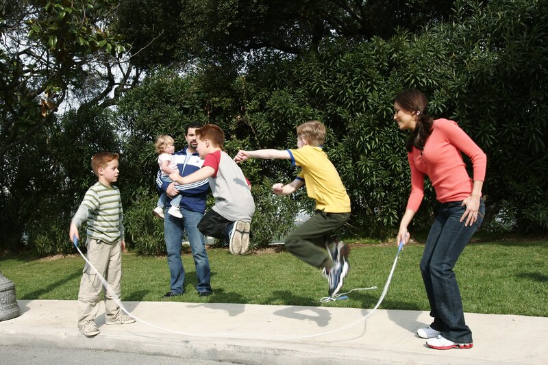 Gabrielle (Eva Longoria, r.) und Carlos (Ricardo Antonio Chavira, 3.v.l.) möchten ein wenig Zeit mit Lynettes Kindern verbringen, um zu dokumentieren, dass sie fähige Eltern sind ...