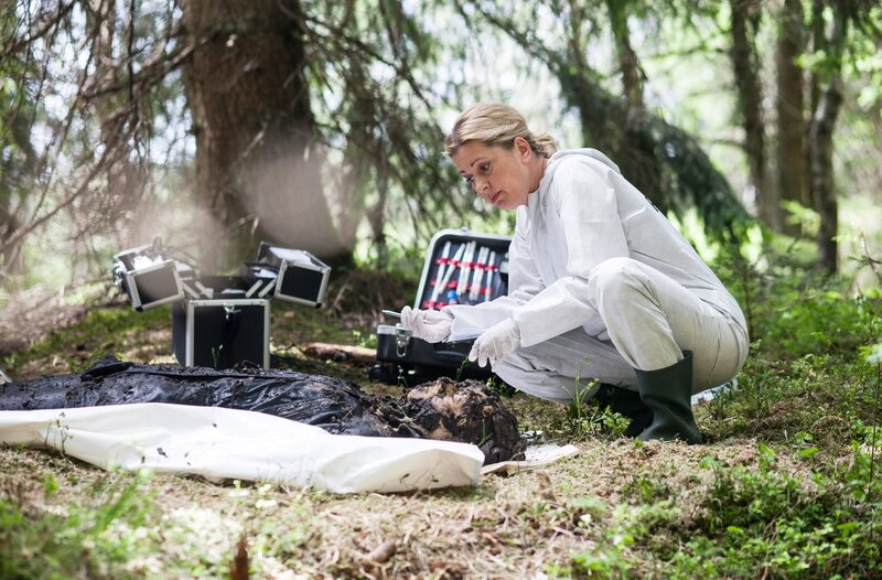 Dr. Anja Licht (Karin Thaler) findet Hinweise, dass die Tote erwürgt wurde.