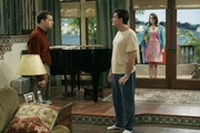 (v.l.n.r.) Alan Harper (Jon Cryer); Charlie Harper (Charlie Sheen); Rose (Melanie Lynskey)