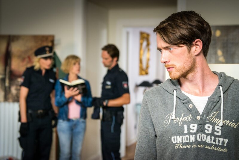 Melanie (Sanna Englund, r.) nimmt die Aussagen von Daniel (Pablo Sprungala) und seiner Frau Kaya (Marie Burchard, l.) auf. Kayas Bruder Michel ist verschwunden. Hat er seinen Großvater niedergeschlagen?