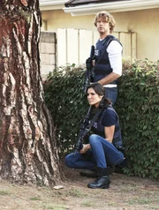 Das NCIS-Team um Eric (Barrett Foa, M.), Callen (Chris O'Donnell, l.) und Sam (LL Cool J, r.) versuchen alles, um ein vermisstes Mädchen zu finden. Doch hat sich der Teenager wirklich einer terroristischen Organisation angeschlossen?
