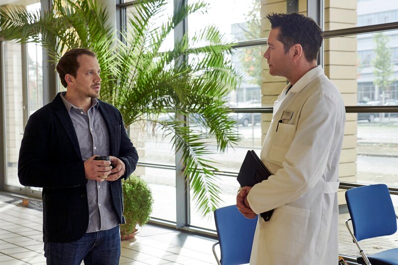 Dr. Philipp Brentano (Thomas Koch, rechts) fragt vorsichtig bei Ingo Bender (Max Hoppe), dem Vater seines kleinen Patienten Luis, nach, ob es vielleicht einen Grund für die häufigen Arztbesuche gibt. Ingo weiß nicht worauf der Arzt hinaus will. Philipp meint, dass Meike möglicherweise unter dem Münchhausen-Stellvertreter-Syndrom leiden könnte. Eine Krankheit bei der meist Mütter Krankheiten oder Symptome forcieren.
