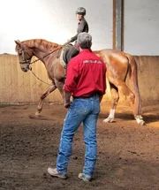 Pferdeprofi Bernd Hackl und Pferdebesitzerin Sabrina mit Stute "Pandora".