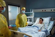 Dr. Moreau (Mike Adler, l.) und Dr. Koshka (Katharina Nesytowa, r.) operieren Natascha Grossek an der Halswirbelsäule. Diese OP erfordert einen starken Griff des Assistenzarztes und natürlich ist es ein sehr sensibles OP-Gebiet. Eine anstrengende OP für Theresa. Hat sie sich zu viel zugemutet als sie Dr. Moreau fast anflehte assistieren zu dürfen? (Komparsin im HG.)