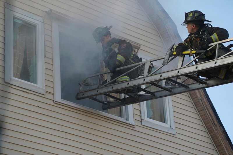 -- "The Path of Destruction" Episode 411 -- Pictured: (l-r) Jesse Spencer as Matthew Casey, David Eigenberg as Christopher Herrmann -- (Photo by: Elizabeth Morris/NBC)