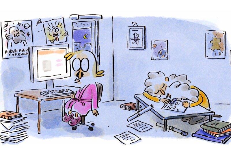 • Professor Schnauzbart (li.) empfiehlt den Beruf des Wissenschaftlers, der viele Opfer fordert und nicht viel bringt ...