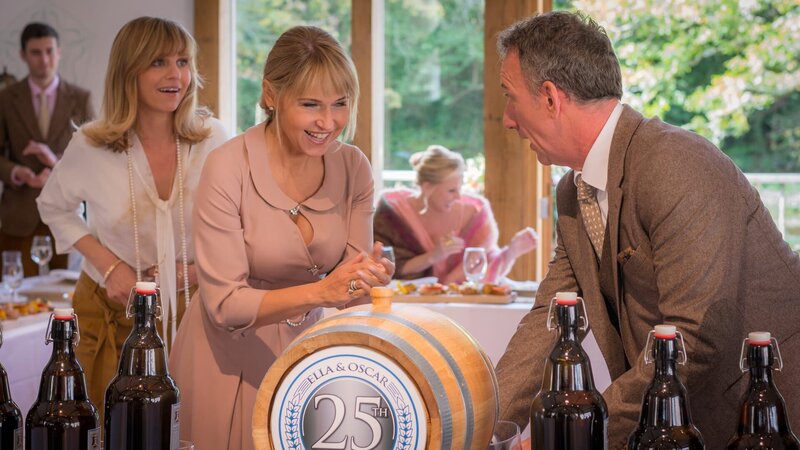 Lexi (Teresa Rizos, li.) hat eine ganz besondere Überraschung zur Silberhochzeit ihrer Eltern Ella (Anica Dobra, M.) und Oscar (Heio von Stetten) vorbereitet.