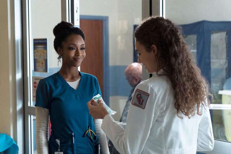 • CHICAGO MED -- "Choices" Episode 109 -- Pictured: (l-r) William Stanford Davis as Ed Brennan, Rachel DiPillo as Dr. Sarah Reese