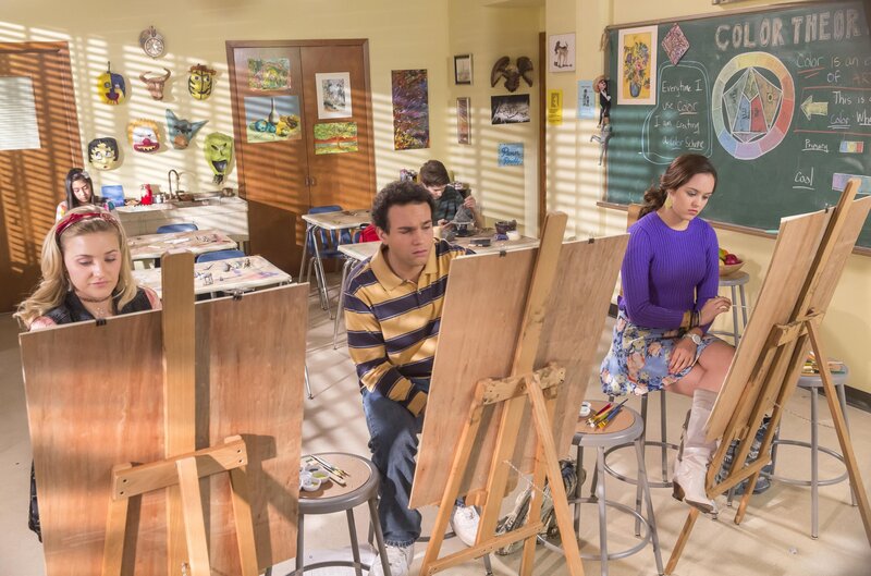"Die Goldbergs", "Gipsköpfe." Adam möchte sich mit seinen Freunden heimlich in einen schmuddeligen Film schleichen. Doch in letzter Sekunde verlässt ihn der Mut. Als sein Vater davon Wind bekommt, reagiert er unerwartet. Er fordert ihn auf, öfter die Regeln zu brechen. Seine Mutter ist von dieser Erziehungsmethode jedoch alles andere als begeistert. Währenddessen modelliert Barry eine Skulptur, die er seiner Freundin zum Valentinstag schenken möchte. Im Bild (v.li.): AJ Michalka (Lainey Lewis), Troy Gentile (Barry Goldberg), Hayley Orrantia (Erica Goldberg).