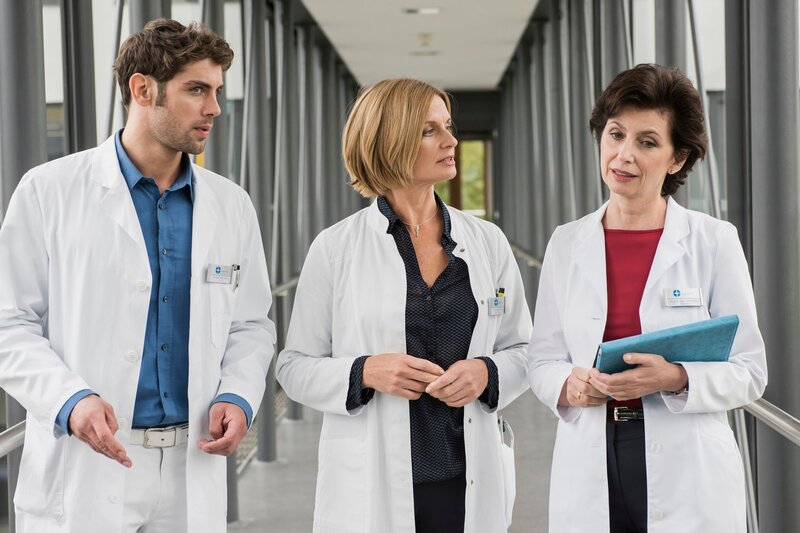 Niklas Ahrend und Julia Berger behandeln unterdessen die Sterne-Köchin Katharina Bentheim. Als sie die Diagnose stellen wollen, kommt auch der besorgte junge Sous-Chef Mathias Dreher dazu.