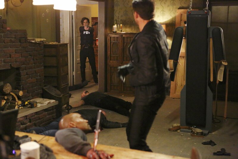 Gerade noch rechtzeitig konnten JJ (AJ Cook, l.), Rossi (Joe Mantegna, r.) und Reid (Matthew Gray Gubler, 2.v.r.) Morgan (Shemar Moore, vorne) finden und befreien ...