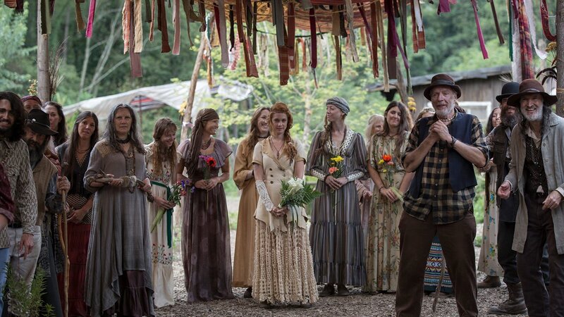 • L-R: Ted Williams als Big Foster Posse Member, Laurie Klatscher als Emelye, Gillian Alexy als G'Win Farrell, Johanna McGinley as Annalivia Farrell,