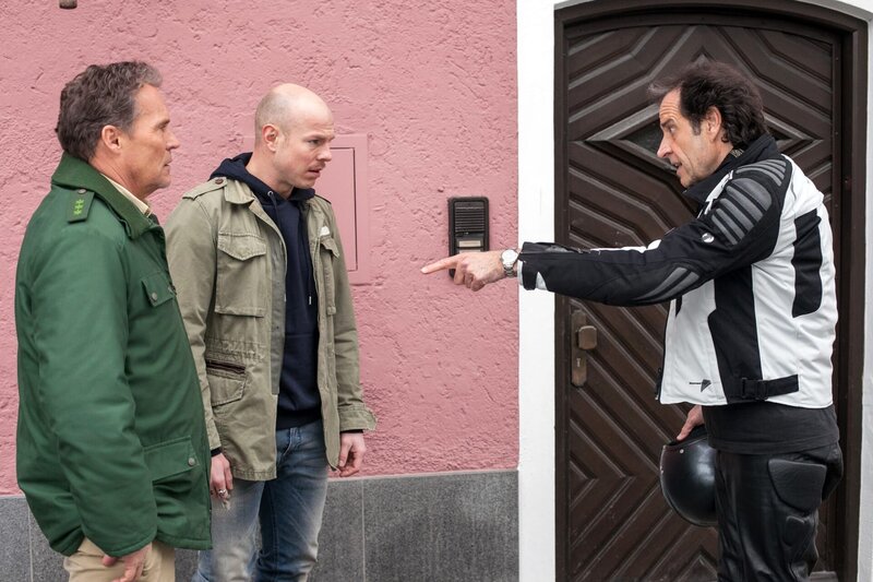 Hubert (Christian Tramitz, links) und Staller (Helmfried von Lüttichau, rechts) befragen Mike Holstner (Martin Laue).